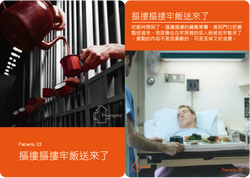 This design research is focusing on general hospital, people who living in hospital for treatment is our target user. We could understand and uncover patients’ and their families’ problems of the current medial environment through this design research. The design research results become positive design strategies in three aspects, including clothing, eating and living, which might turn patients’ feelings of fear and anxiety into comfort and happiness. The living quality of medical environment could also be improved.